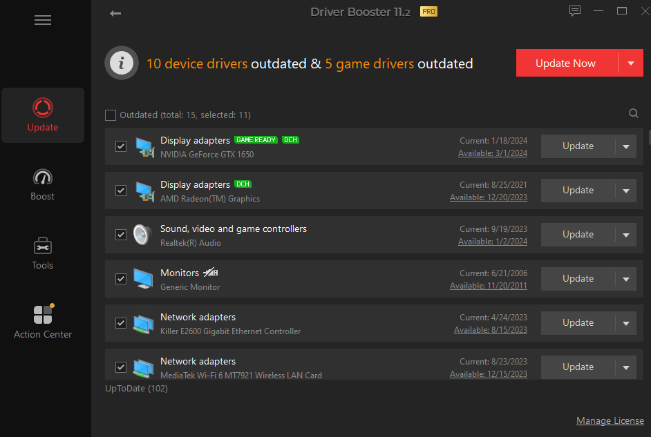 Driver Booster 11 continues the simple and easy “one-click” interface design to make the process simple and fast. Moreover, the speed of scanning and driver installation becomes ever faster. If absolute convenience is needed, you can activate the Auto Driver Update to always get the latest driver update in real-time.